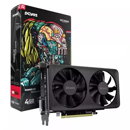 Com arquitetura AMD Radeon, possui 4GB de memória GDDR5 rodando a 6000 MHz e interface de 128 bits, garantindo largura de banda de 96 GB/s para renderizações estáveis e detalhes gráficos suaves.