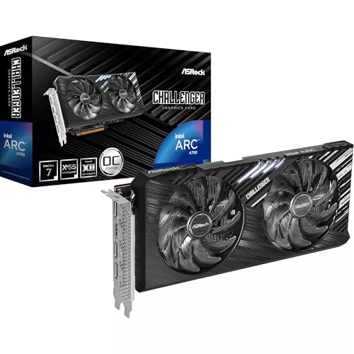 Tem 8 GB GDDR6 em interface de 256 bits, com clock de memória a 16 Gbps, garantindo transferência rápida para jogos e aplicativos profissionais em até 7680x4320 pixels. A microarquitetura Intel Xe HPG traz recursos como o Intel Xe Super Sampling (XeSS), que usa IA para melhorar imagem e frames estáveis.